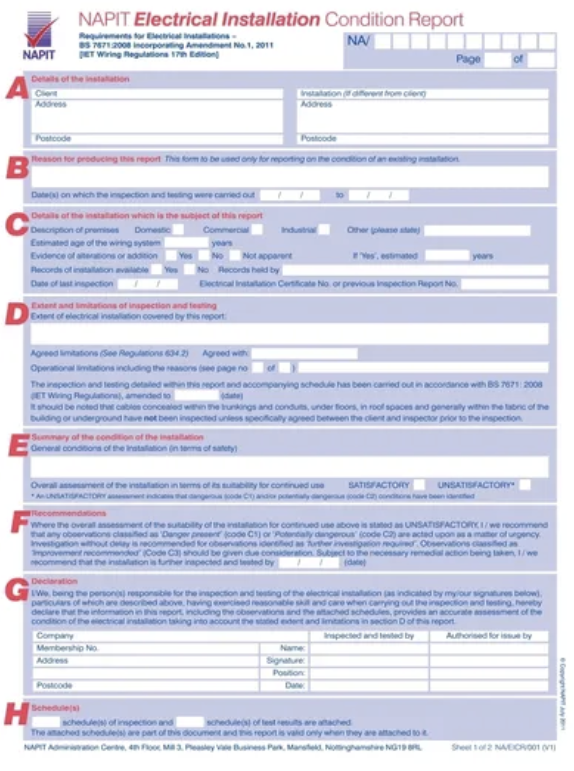 ELECTRICAL INSTALLATION CONDITION REPORT (EICR)